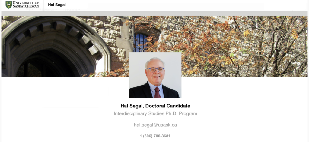 About Hal Segal: Hal Segal returned to academia 50 years after earning his Master Degree,
