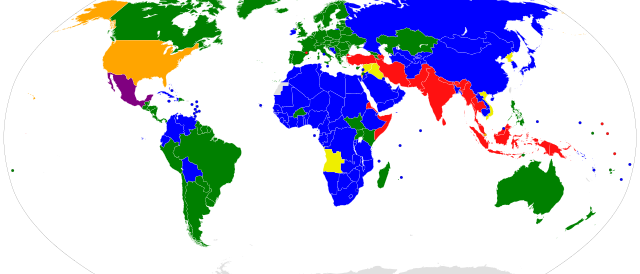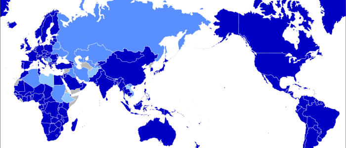 Parties to the Geneva Conventions. Source: https://commons.wikimedia.org/wiki/File:Parties_to_the_Geneva_Conventions.svg#/media/File:Parties_to_the_Geneva_Conventions.svg Key Parties to GC I–IV and P I–III Parties to GC I–IV and P I–II Parties to GC I–IV and P I and III Parties to GC I–IV and P I Parties to GC I–IV and P III Parties to GC I–IV and no P Permission: Public Domain.