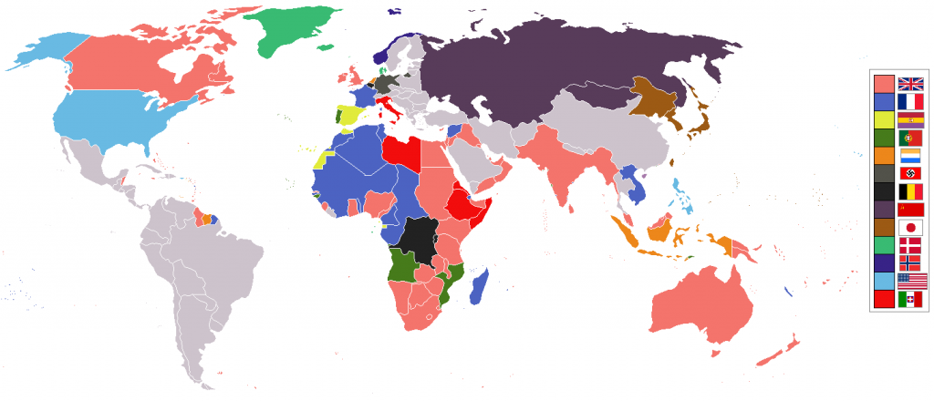 Figure 4-12: World 1936 empires colonies territory. Source: https://commons.wikimedia.org/wiki/File:World_1936_empires_colonies_territory.png#/media/File:World_1936_empires_colonies_territory.png Permission: CC BY-SA 3.0
