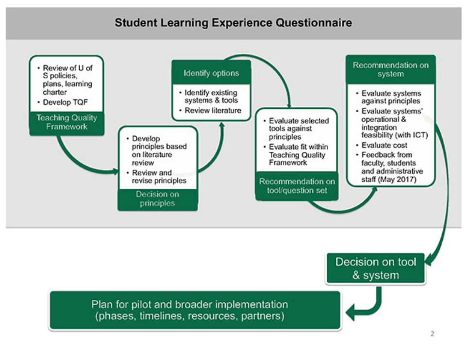 • End of course, How did it go? Survey. Continuous improvement of course design or delivery is identified and address.