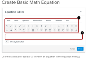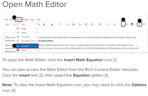 Infrastructure Community. (n.d.). How do I use the math editor in the Rich Content Editor as an instructor?. Instructure Community. https://community.canvaslms.com/t5/Instructor-Guide/How-do-I-use-the-Math-Editor-in-the-Rich-Content-Editor-as-an/ta-p/816