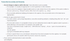 - Provide guidelines to content creators and contributors on the importance of accurate captions or transcripts.